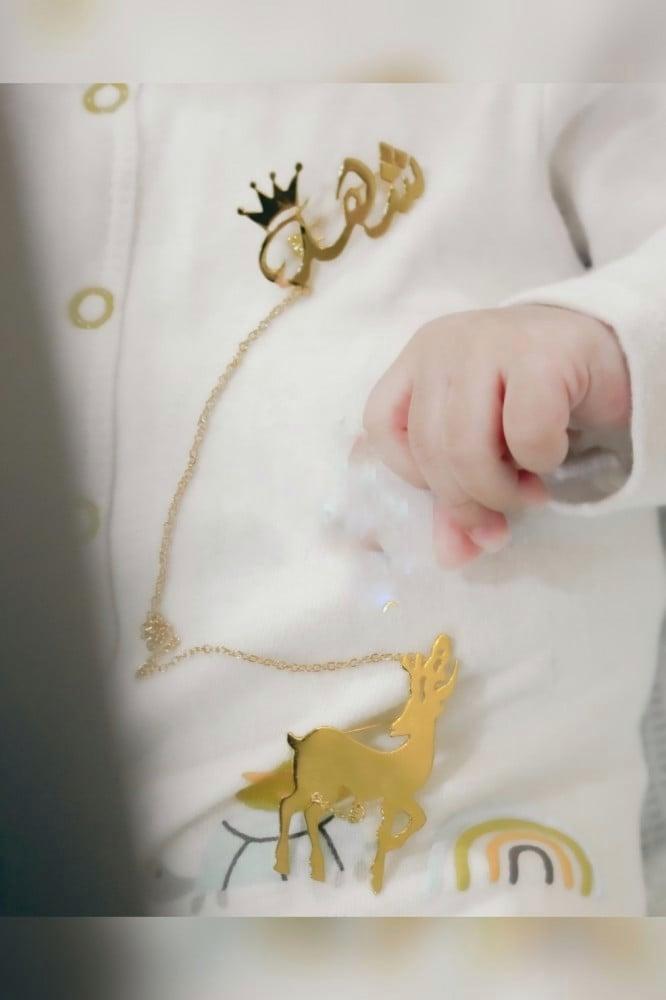 الأنيق في الصغر أنيق في الكبر فدللو أطفالكم ببروش بالاسم روعة بتصميم غزال وبالطلاء الذهبي أو الفضي الذي لا يصدأ كما نقدم صيانة مجانية له ما بعد البيع