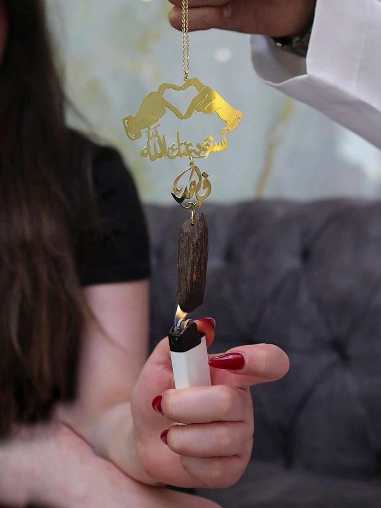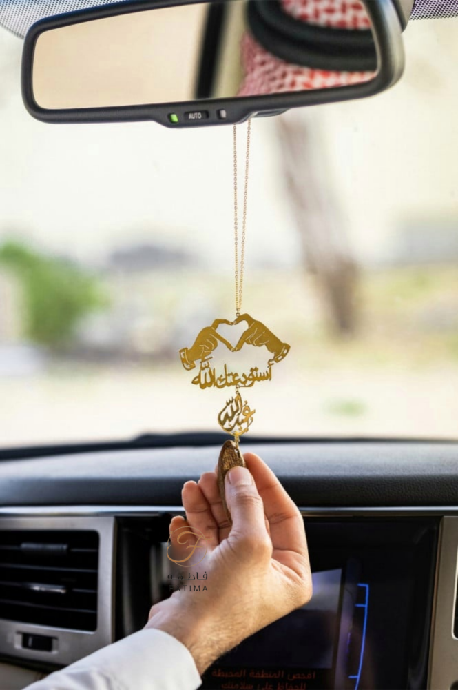 تعليقة سيارة عود بالاسم مع شكل قلب بيدين متوفر بطلاء ذهبي أو فضي أصلي وعبارة استودعتك الله بتصميم فني. من فاطمه أجمل تعليقات سيارة وهدايا رجاليةطريقة الإستعمال.يتم اشعالها لمدة 3 ثواني ويتم تبخير السياره.العود يستخدم عدة مرات.