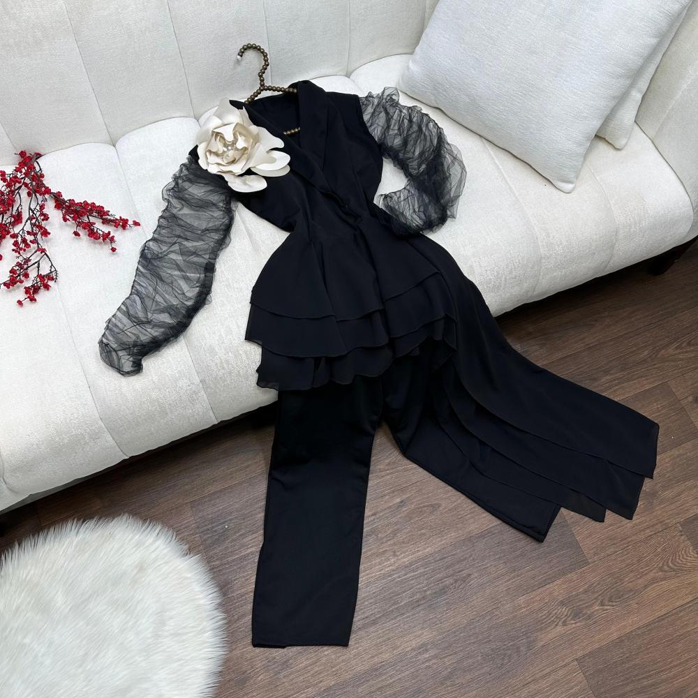 الخامة : كريب لاكرا + شيفون + اكمام تول + ورده من القماش الميكادو على فصوص تطريز