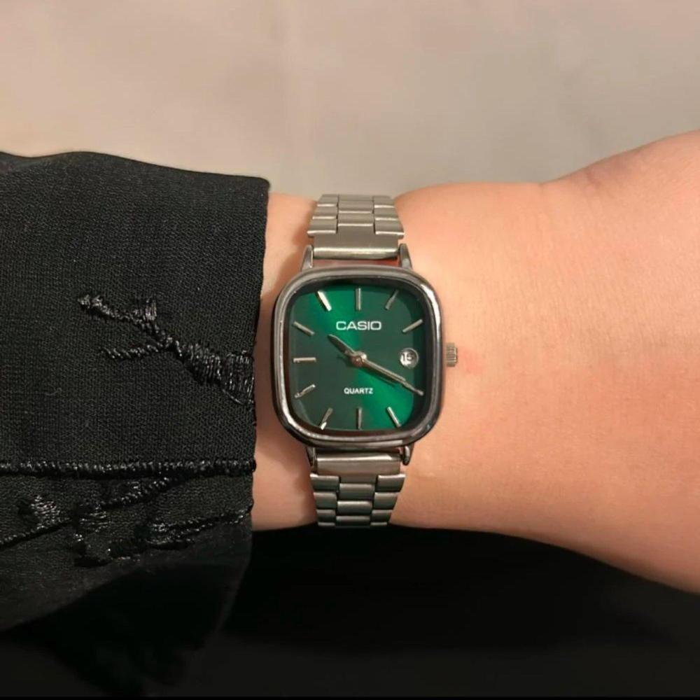 ساعة كاسيو نسائي - سير فضي مينا اخضر