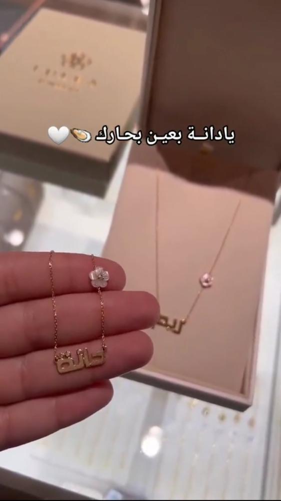 سلسال بالاسم ناعم مع ورده صدف الزركونسلسال بالاسم مطلي ذهبتصميم الاسم باللغة العربية والإنجليزيةمتوفر لونين فضي ذهبيضمان الون مدى الحياةحجم السلسال يتكبر ويتصغرمناسبة للنساء و الأطفالتأتي بعلبه فاخره وكيس عليها
